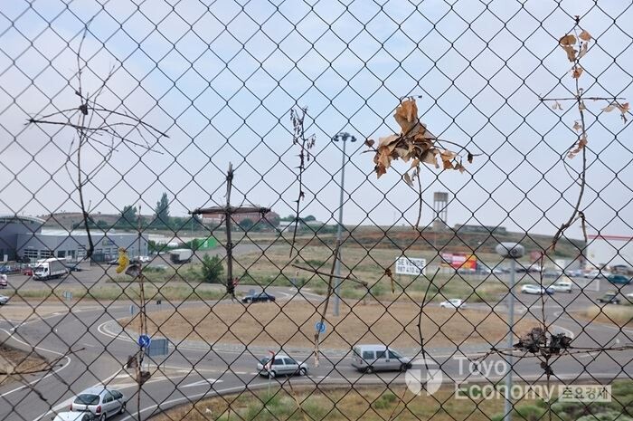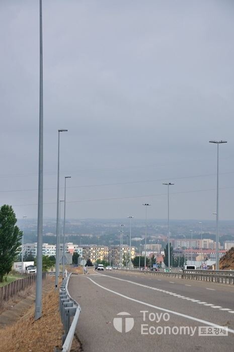 앞에 보이던 높은 언덕을 향해 걸었다. 그리고 금새 언덕머리에 올라섰다. 드디어 leon 시내가 눈앞에 펼쳐져 있다. leon y castilla 지방의 주도인 leon이자 이 지방의 끝자락이기도 하다. 무척이나 커 보이는 시내가 반갑기도 하다. 도심이 가까워지면서 높은 건물과 상가가 많이 보인다. 예전 가이드북에는 볼보대리점이 있는 근처 횡단보도를 건너 왼편으로 걸어가야 한다고 되어 있지만 지금은 트러스트 육교가 설치되어 있기때문에 노란 화살표따라 걸어가면 된다. 시간이 흘러 순례길도 많이 변하여 순례자들을 맞이하고 있다. 그리고 철조망에는 어김없이 나뭇가지로 만든 십자가가 줄지어 서 있다. 모양도 형태도 다른 십자가는 누군가의 마음을 담아 만들어졌을 것이다. 나도 북쪽길에서 만들어본 경험이 있기에 단순한 십자가로 보이지 않는다. 순례자의 마음이 깃든 자신의 분신이다. 이런것도 해보지않고 마냥 걸어가는 일행들이 조금은 안쓰럽게 보였다.