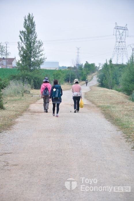나의 일행들은 여유가 없이 마냥 걷기만 한다. 좀더 주변을 둘러보는 여유를 가지면 좋을텐데... 난 이때만큼은 인솔자가 아닌 순례자가 되어 주변을 감상하고 사진작가처럼 풍경을 담기위해 뛰어다닌다. 순례길에서는 정해진 규칙이나 방식은 따로 없다. 나는 즐기는 순례길을 원하기 때문에 많이 걷기보다 여유롭게 걷고 주변을 많이 둘러보고 쉬어가고, Bar에서 식사하는것을 순례길의 즐거움으로 삼았다. 하지만 어떤 사람들은 그냥 앞만보고 걷는다. 그리고 완주했다고 자랑을 한다. 걸으면서 무엇을 봤냐고 물어보면 아무말도 못한다. 앞만 보고 걸었기 때문에...
