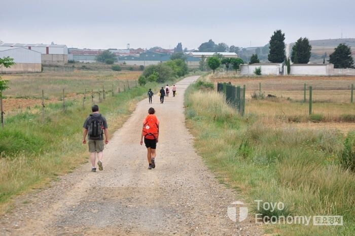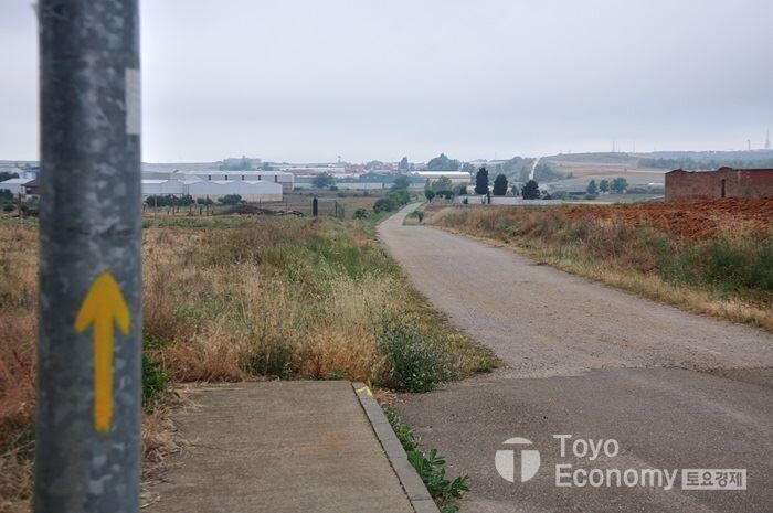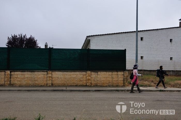 마을 끝자락에서 뒤에서 따라오는 일행들을 기다렸다. 잠시 쉬며 지나가는 순례자 모습을 지켜보았다. 말없이 터벅터벅 앞으로 걸어가는 사람들, 인사도 없이 그냥 앞만 보고 가기 바쁘다. 일행들이 보이자 잠시 쉴 줄 알았는데 나를 앞서서 스치듯 지나가 버린다.
