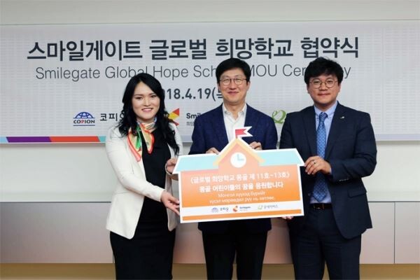 [토요경제=정동진 기자] 스마일게이트 희망스튜디오는 20일 국제 NGO 단체 굿네이버스 및 코피온과 몽골 내 소외지역 학교 3곳에 '글로벌 희망학교 11호~13호'를 설립한다고 밝혔다.