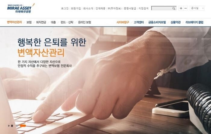 [토요경제=정종진 기자] 미래에셋생명은 변액보험 전문회사의 명성에 맞춰 변액보험과 관련한 메뉴를 중심으로 회사 메인 홈페이지를 개편했다고 4일 밝혔다.