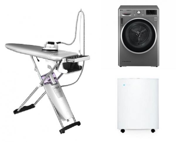 ▲ 로라스타 펄스실버(왼쪽), LG전자 트롬 듀얼 인버터 건조기(오른쪽 위), 블루에어 클래식 680i. <사진=각사>