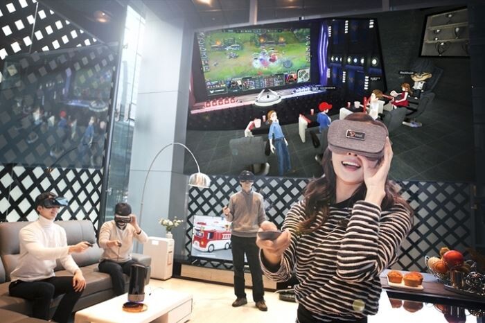 SK텔레콤은 VR 공간에서 다른 참여자들과 같은 동영상 콘텐츠를 보며 소통할 수 있는 ‘옥수수 소셜 VR’을 공개한다.
