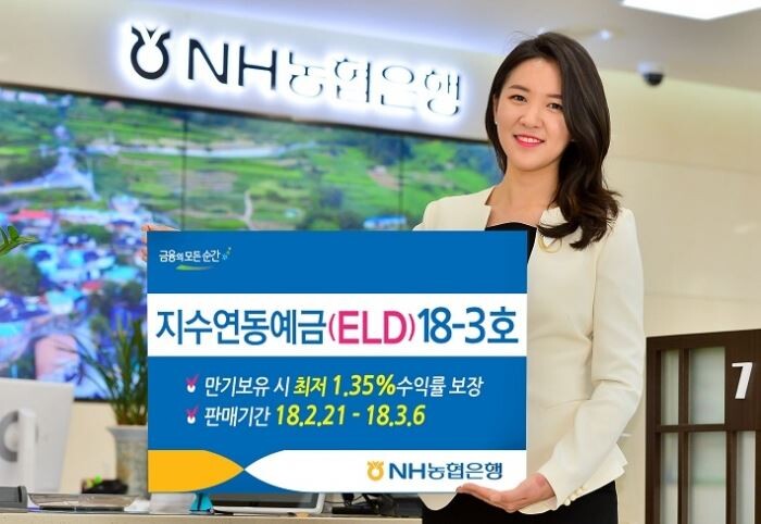 [토요경제=유승열 기자] NH농협은행은 최저 1.35%를 보장해주는 '지수연동예금(ELD)18-3호'를 3월 6일까지 판매한다고 21일 밝혔다.