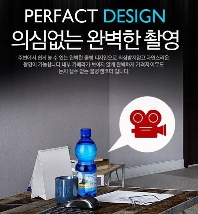 물병형태의 제품을 구입한 한 소비자는 “시계 볼펜 안경등등 여러 가지를 써봤는데 이것 역시 마음놓고 찍기 정말 좋아요 렌즈가 전혀보이질 않으니 언제 어디서든 정말 맘놓고 촬영할 수 있어요”라는 후기글을 남겼다.