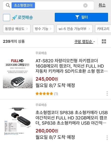 쿠팡은 지난 1일 기준 생활용품 추천상품 카테고리에서 해당 제품을 내렸지만 이 외의 적외선촬영까지 가능한 차량리모컨형 초소형캠코더나 USB형태의 초소형캠코더 제품은 여전히 판매되고 있다.