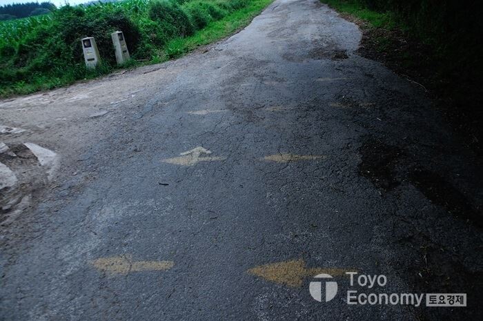 Palas de Rei로 가는 길은 우회길이 많다. 산지가 많다보니 산을 넘기보다 도로 옆을 지나는 코스인데, 도로변이 안전하지 않다고 생각되었는지 안전하게 걸을 수 있는 우회길이 많이 보였다. 우회길은 대부분 도로옆을 피해 마을이나 농로를 따라가는 코스이며, 조금 더 길게 걸어야 한다. 말 그대로 '우회길' 이기 때문에... 우리의 일행들한테 우회길 이정표가 나올때마다 얘기하면 반응은 한결 같다. 짧게 오리지날 루트로 가자는 것이다. 차가 별로 없으니 괜찮을 거라면서 좀더 짧고 빨리 가는 길을 선택했다. 나는 인솔자로써 그들이 원하는 부분을 들어주고 그대로 나섰다.