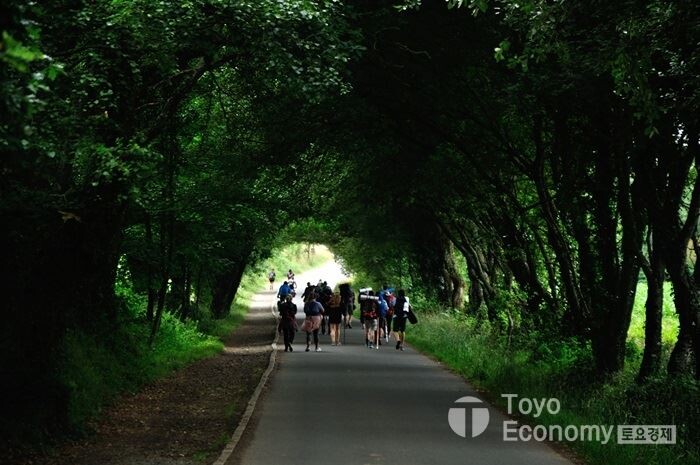 새벽에 사람들과 함께 길을 나섰다. 7월 초반이지만 새벽은 싸늘하다. 그리고 숲이 많아 햇살을 볼 수 있는것은 한낮에 다음 도시에 도착했을때 뿐이다. 걷는 동안은 숲속길을 거닐기 때문에 뜨거움을 맛보는것이 어렵다. 누군가가 말했다.