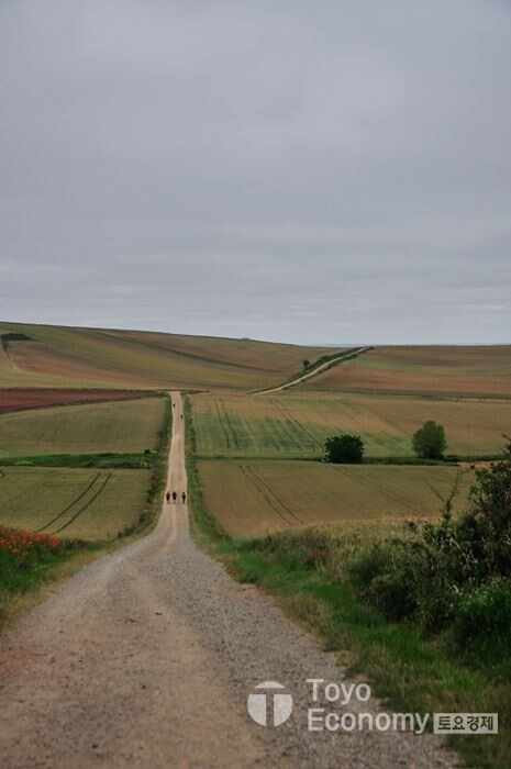 ‘The Way‘라는 영화를 보면 언덕을 너머 길게 이어진 길을 가는 장면이 보인다. 내가 걷고 있는 지금 여기가 그곳이 아닐까 하는 느낌을 지울 수가 없다. 그만큼 익숙하면서도 새롭게 보이는 길이기 때문이다. 내리막길도 굽이치듯 계단처럼 내려온다. 저앞에 도시가 보여도 가까운듯 하지만 아주 멀리 있는 곳이며 거리감이 무뎌지게 만드는 신기의 장소이다. 마치 사막에 신기루속에 보이는 오아시스처럼...
