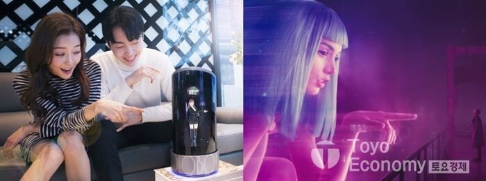 지난해 개봉한 드니 빌뇌브의 영화 ‘블레이드 러너 2049’에는 ‘홀로박스’와 좀 더 흡사한 AI가 등장한다. 주인공 K(라이언 고슬링)와 함께 생활하는 AI 조이(아나 디 아르마스)는 홀로그램 형태로 집안에 머물러있다. 여기에 특정 기기를 구매하면 조이를 휴대해 장소에 상관없이 AI를 재생할 수 있다. ‘홀로박스’ 역시 외출할 때 스마트폰으로 옮기면 증강현실(AR(을 이용해 외부에서도 이용할 수 있다.