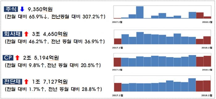 금리 상승 전망에 AA 등급 이상 우량 기업 중심의 선제적인 자금 조달 수요와 연초 기관투자자의 자금운용 재개 등에 의한 것으로 분석된다.