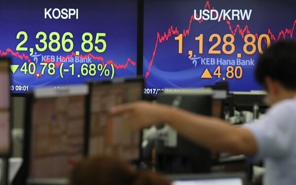 이날 코스피는 전 거래일보다 40.78포인트(1.68%) 하락한 2386.85로 장을 마감했다.