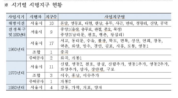 서울시는 1937년 돈암지구를 시작으로 1991년 강남개발까지 54년간 58개지구 139.9㎢의 토지개량사업을 시행했는데 서울시가지 총 면적 370.9㎢ 중 37.7%에 해당된다.