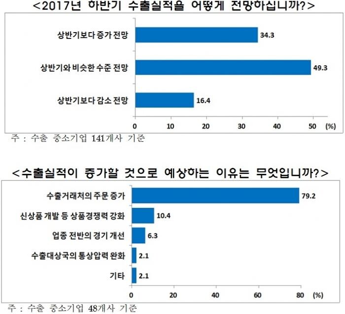 조사에 따르면 2017년 하반기 중소기업의 수출실적 및 설비 투자 전망은 양호한 것으로 나타났다.