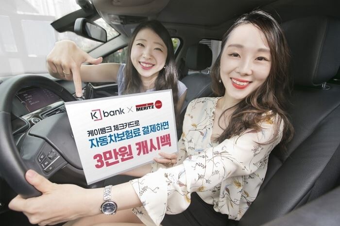 메리츠 다이렉트 자동차보험 신규고객이라면 케이뱅크 체크카드로 자동차보험료 30만원 이상 결제시 3만원 캐시백을 받을 수 있다. 케이뱅크 웹·앱의 이벤트 페이지에서 해당 공지글 중 '내 차 보험료 확인하기' 버튼 클릭 후 케이뱅크 체크카드로 보험료를 결제하면 된다.