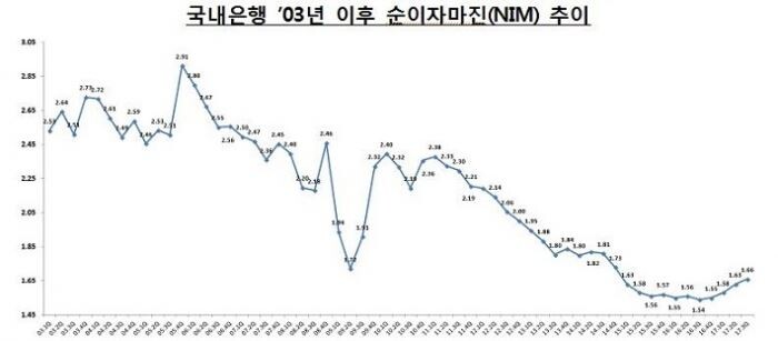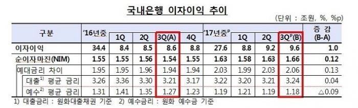 은행 이익 핵심 지표인 순이자마진(NIM)은 1.66%로 작년 3분기보다 0.12%포인트 상승했다.