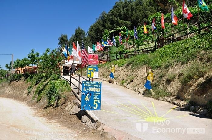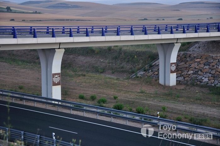 스페인 사람들이 순례길에 대해서 얼마나 애착을 가지고 있는지 느끼는 부분 중에 하나가 도로 변 기둥에 표시된 가리비 표시나 순례길 표식이 보일 때이다. 이를 공사하면서 설치하였다는 것 만으로도 대단한 자부심을 느끼고 있음을 깨닫게 된다. 우리나라 였다면 과연 이렇게 할까? 오늘따라 걸으면서 수많은 생각이 머리속을 지나간다. 오늘 만큼은 일행에 대한 불편함이나 짜증을 내는 사람이 없다. 그저 편안한 순례길이다.