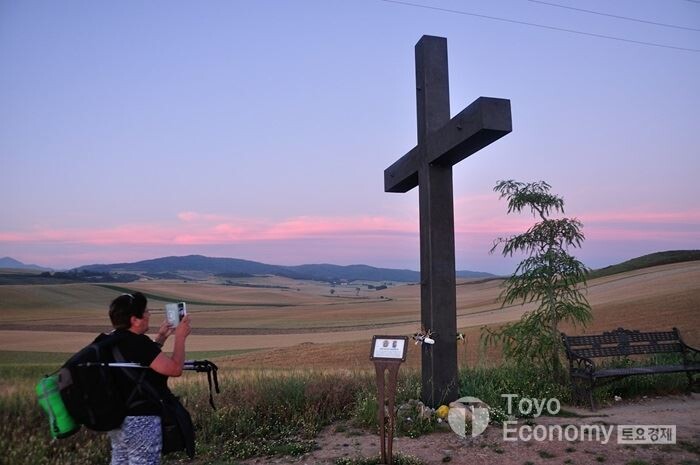 그리고 부드러운 곡선이 능선을 만든다. 그 아래에 순례자들이 지나가고 길이 헷갈릴가 싶어 돌로된 이정표와 크고 작은 십자가가 군데군데 보인다. 이또한 매일 보는 일상적인 모습이다. 점점 이곳에서 보내는 시간이 편하고 내가 있어야할 곳이라는 착각이 들 정도이다. 내생활이 이렇고, 한국에서 살던 내 모습이 꿈인것처럼 느껴진다. 회피일까? 아니면 내가 바라는 삶이라서 그런걸까?