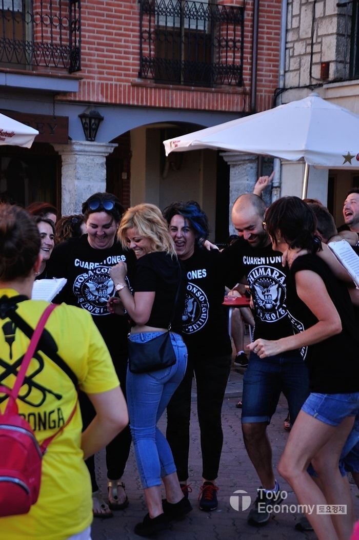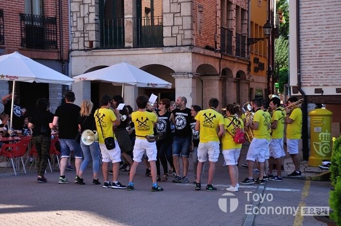 순레길을 걷다보면 축제나 행사가 있는 도시를 만날때가 있다. Belorado에 도착하여 휴식할 때 저녁때 되어가니 밴드소리가 들려왔다. 무슨 축제가 벌어지는줄 알고 나가보았더니 단체로 맞춘 티셔츠를 입은 무리들이 브라스밴드 소리에 맞춰 춤을 추고 있었다. 무슨 축제냐고 주변 사람에게 물어보니 이곳에 사는 사람드 학교 동문모임이라고 한다. 이들은 2년에 한 번씩 모여 이렇게 보낸다고 한다. 이들의 노래소리는 밤 늦게까지 이어졌다. 단순히 술만 먹고 노는 모임에 익숙한 나같은 한국인 중년의 모습이 아니다. 젋고 활기찬 즐기는 모임의 모습이 부럽기만 하다.