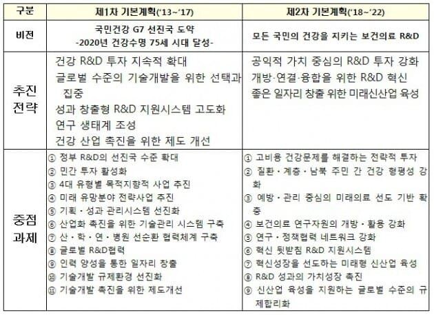 이에 따라 정부는 공익적 가치 중심의 보건의료 R&D 투자를 강화한다. 정부는 2015년 기준 73.2세인 우리 국민의 건강수명을 오는 2022년까지 76세로 3세 연장하고 제약·의료기기·화장품 산업에서의 신규 일자리 10만개를 창출하는 것을 목표로 설정했다.