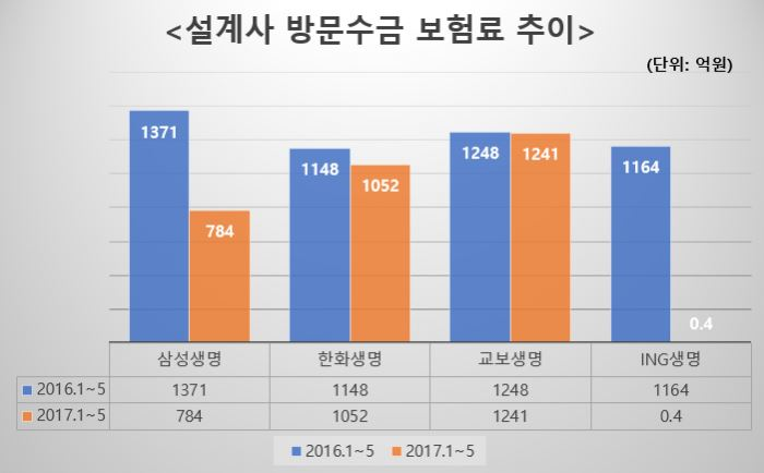 실제로 삼성생명은 지난해 7월 방문수금을 중단, 지난해 1~5월 1371억8000만원에 달하던 방문수금액을 올해 1~5월에는 784억8900만원으로 절반 가까이 줄였다.