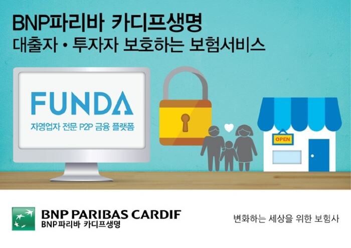 [토요경제=정종진 기자] BNP파리바카디프생명은 자영업자 전문 P2P 금융기업인 펀다와 업무협약을 맺고 '펀다 대출상점 안심보험 서비스'를 제공한다고 14일 밝혔다.