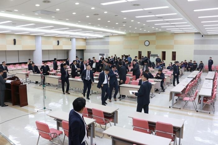 KB노협은 예행연습이 진행중이던 강당에는 특정 좌석에 특정인의 이름표를 올려져 있었고, 직원들을 분산 배치시킨 채 각 안건에 대해 "찬성합니다" 등을 제창하는 연습을 시키는 한편, '전문 주총꾼'으로 보이는 외부인까지 예행연습장에 참석시키는 등 임시주총을 준비하고 있었다고 강조했다.