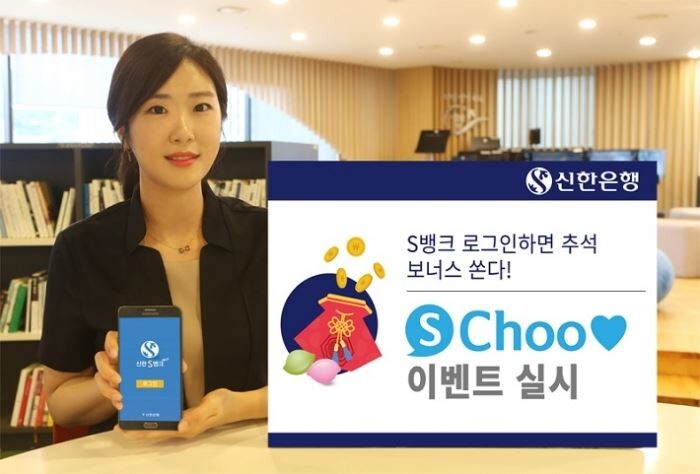 [토요경제=유승열 기자] 신한은행 오는 9월 20일까지 추석맞이 'S Choo~♥ S뱅크 로그인하면 추석 보너스 쏜다!' 이벤트를 시행한다고 16일 밝혔다.
