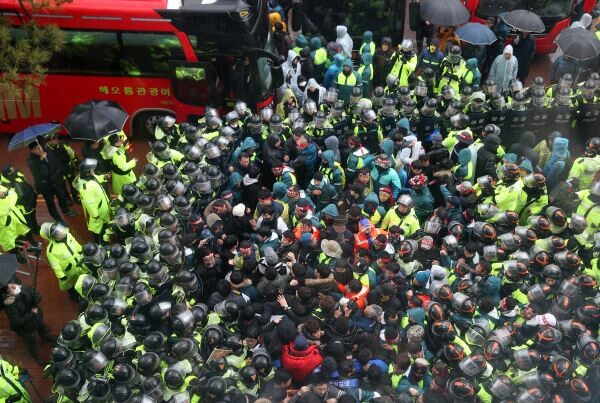 경찰은 만약의 사태에 대비해 10여 개 중대를 주총장 안팎에 배치해 질서유지에 나섰다.