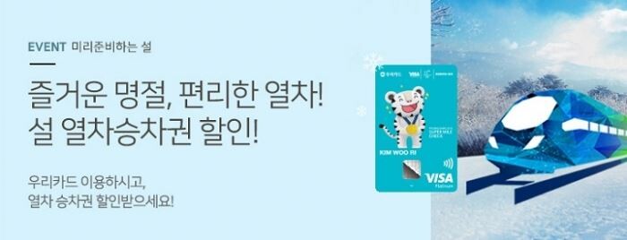 [토요경제=정종진 기자] 우리카드는 올해 설 열차표 예매에 맞춰 귀성표를 할인해 주는 이벤트를 진행한다고 12일 밝혔다.