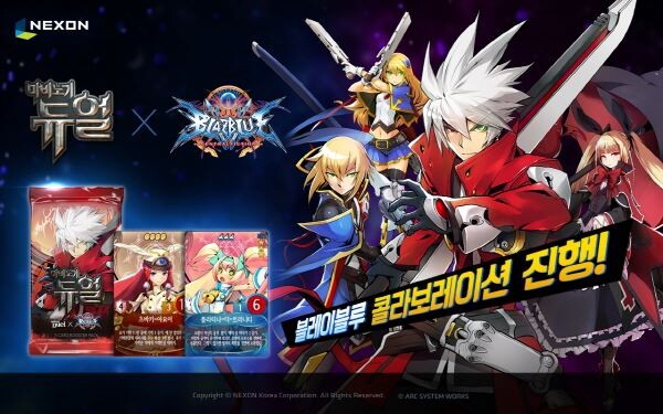 [토요경제=여용준 기자] 넥슨은 데브캣 스튜디오에서 개발한 정통 TCG(Trading Card Game) ‘마비노기 듀얼’에 일본 인기 대전격투게임 ‘블레이블루’와 제휴를 맺고 다양한 프로모션을 실시한다고 2일 밝혔다.
