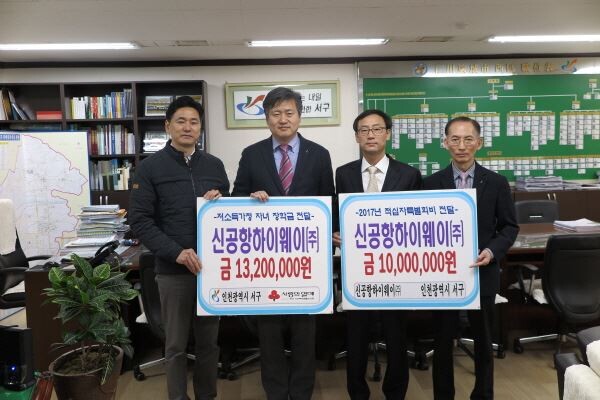 신공항하이웨이는 이날 장학금 1320만원 외에도 불우이웃돕기 성금 1000만원을 같이 기탁했다.