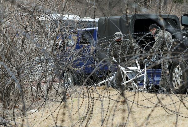 ▲ 지난 1일 오후 경북 성주군 초전면 롯데 골프장 입구 주변에 군이 철조망을 설치하고 출입을 통제하고 있다. <사진=연합뉴스>