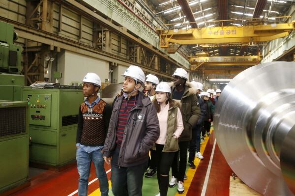 두산중공업에 따르면 이번 현장 견학은 산학협력의 일환으로 실무역량을 높이기 위해 마련됐다. 외국인 학생들은 경남 창원의 두산중공업 본사 터빈공장, 원자력공장 등 주요 제품 생산 현장을 둘러봤다.
