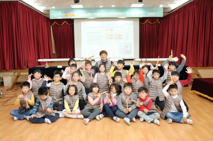과학 체험교실은 ‘미사일은 어떻게 발사되나요’란 주제로 LIG넥스원 박인철 유도무기사업부문 선임연구원의 재미 있는 강의와 에어로켓 제작, 발사 실험 등으로 진행됐다.