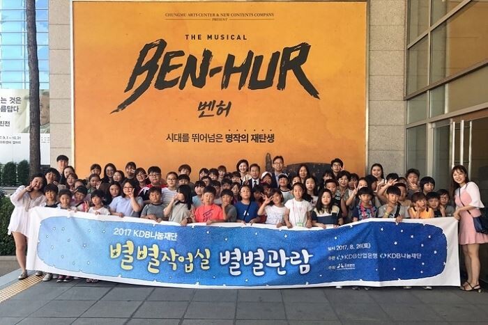 [토요경제=유승열 기자] KDB산업은행은 KDB나눔재단이 지난 26일 서울·경기 지역아동센터 소속 초등학생 90명을 초청해 통합문화예술교육 '2017 KDB 별별작업실'의 뮤지컬 공연관람을 실시했다고 28일 밝혔다.