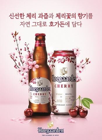 ‘호가든 체리’는 한국에서 첫 출시되며 이달 말부터 국내 대형마트와 편의점, 프리미엄 펍(Pub) 등에서 봄 시즌 한정으로 만나 볼 수 있다.