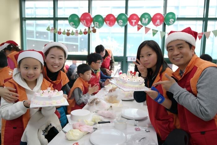 봉사 참가자들은 3시간 동안 케이크를 정성껏 만들었으며 초대를 받은 강남구 저소득층 독거노인과 장애인 가정 등 100곳에 전달했다.