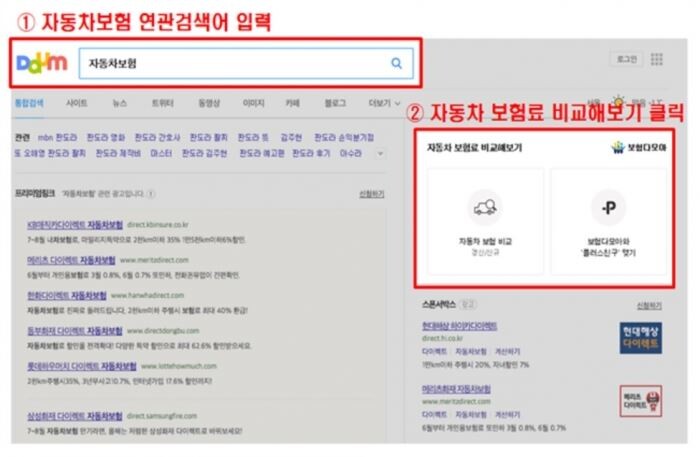 이에 따라 다음 검색창에 자동차보험, 자동차보험료 등 연관 검색어를 입력하면 보험다모아의 보험사별 자동차보험 보험료를 비교할 수 있고 손쉽게 가장 저렴한 자동차보험에 가입할 수 있게 됐다.
