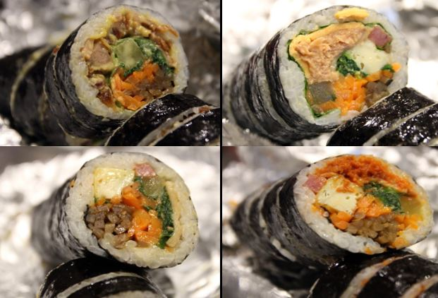 우리나라 김밥의 종류는 밥과 야채를 함께 말아서 만든 기본김밥과 김과 밥 오징어무침을 따로 먹는 충무김밥, 한 가지 재료를 밥 속에 넣어 삼각형태로 만드는 삼각김밥이 가장 대표적인 김밥이라고 할 수 있다. 기본 김밥은 단무지,시금치,당근,계란을 기본으로 돼지고기,쇠고기,닭고기 등의 재료를 여러 형태로 조리하여 만들 수 있을 뿐만 아니라 재료의 종류와 양에 따라 프리미엄 김밥으로 변신해가고 있다.