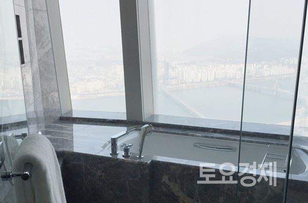 ‘6성급 호텔’을 표방한 최고급 호텔인 ‘시그니엘 호텔’ 역시 부러움을 자아내기에 충분했다. 시그니엘 호텔은 76층부터 101층에 마련돼있다.