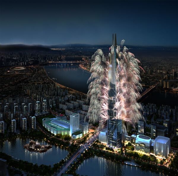 롯데물산은 그랜드오픈을 앞두고 2일 불꽃축제를 열 예정이다. 박현철 롯데물산 대표이사는 “두바이 부르즈 칼리파나 뉴욕 타임스퀘어 등 세계 랜드마크에서 열리는 불꽃축제와 견줄 수 있는 대규모 축제가 될 것”이라고 밝혔다.