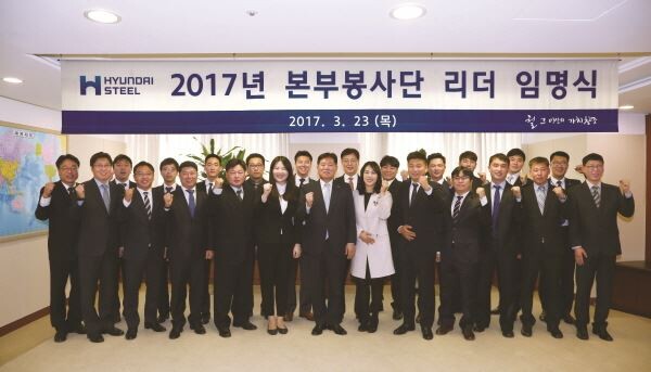 [현대제철 자료 제공] 현대제철이 지난 23일 봉사단 리더 임명식을 개최하고 2017년 사회공헌 활동을 위한 본격적인 걸음에 나섰다고 24일 밝혔다.