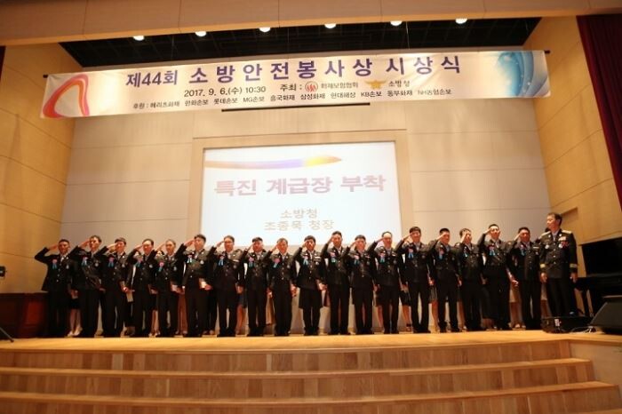 [토요경제=정종진 기자] 화재보험협회는 6일 서울 영등포구에 위치한 화보협회빌딩에서 전국 우수 소방공무원을 표창하는 '제44회 소방안전봉사상 시상식'을 가졌다.