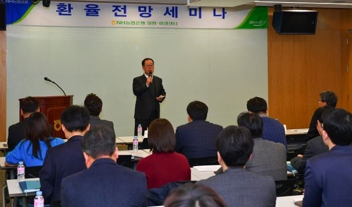 농협은행 외환·파생센터는 2006년부터 매년 수출입기업 임직원과 영업점 직원을 초청해 환율전망 세미나를 진행하고 있다. 이번 세미나에는 오석태 SG증권 이코노미스트가 강연자로 나와 올해 세계경제, 금융시장 및 주요통화 환율전망을 제공했다.
