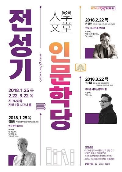 올해에는 1월 깅경집 가톨릭대 교수의 인문학 강연을 시작으로 스타트를 끊었다. 이어 2월 22일엔 기자출신 손철주 작가가 '그림, 아는만큼 보인다'라는 주제로 강연을 펼쳤다. 오는 3월엔 '파산수업'의 저자 정재엽 작가가 문학의 힘에 대해 강연을 펼칠 예정이다.