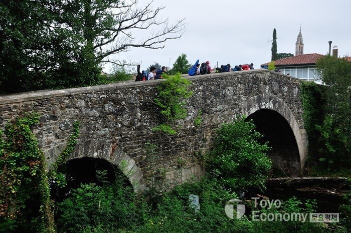 사람들은 많지만 우리는 여유로웠다. 나름 알베르게를 예약한 뒤 움직이기 때문에 침대 선점으로부터 어느정도 해방되었기 때문이다. 천천히 걸어도 괜찮았다. 길에서 다양한 사람들을 만난다. 연주하는 사람들도 있고 곳곳에 보이는 동물들과도 교감하는 사람들도 있다. 모두가 우리처럼 여유로워 보였다. 순례길은 많은 강을 지나는데 강이 있는 곳마다 돌을 쌓아 만든 다리를 건넌다. Furelos에 있는 Roman Bridge (Puente de San Xoán de Furelos)는 규모로 따지면 작지만 아담하고 어여쁜 돌다리이다. 꽤나 많은 돌다리를 건넜지만 이름이 기억나는 곳은 드물다. 아주 오래전 로마시대부터 있었던 다리인지 이름마저 고풍스러웠다.