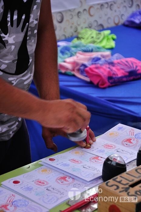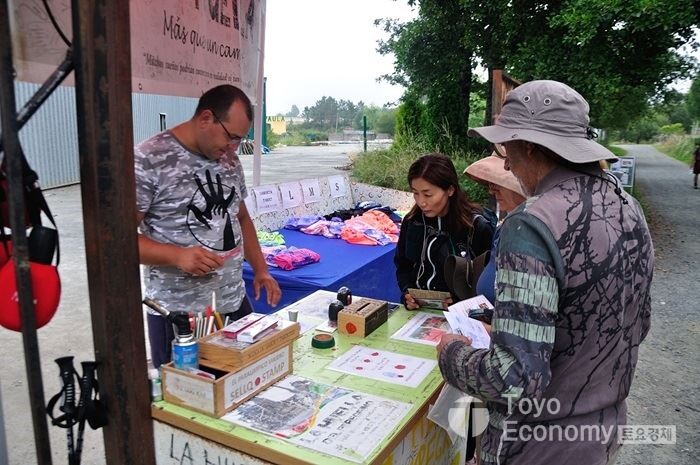 Palas de Rei를 출발하여 중고차매매단지를 지나면 독특한 Sello를 주는 곳이 있다. 기부제로 운영하며 개인이 왁스를 녹여 도장을 찍어준다. 여러가지 모양을 가지고 있고 크기에 따라 금액이 다르기는 하지만 1유로면 특이한 Sello를 나의 크레덴시알에 넣을 수 있다. 그러다 보니 지나가던 순례자들 일부는 여기에서 멈춰서서 바라보거나 자기 순서를 기다린다. 나와 일행도 그냥 지나칠 수 없어 여기만에 Sello를 기다리고 있다.