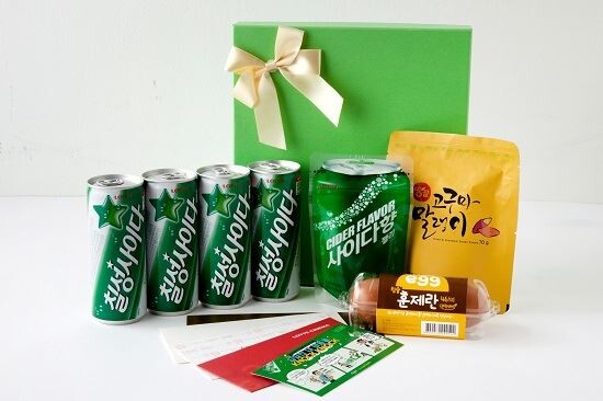 완전사이다 패키지는 250㎖ 용량의 칠성사이다 4캔, 구운 계란 2개, 고구마 말랭이, 사이다향 젤리를 포함해 롯데칠성몰 상품권(1만원), 백화점상품권(1만원), 영화상품권(2장), 커피교환권(1장) 중 하나가 깜짝 경품으로 구성돼 있다.