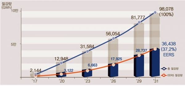 ▲ 제8차 전력수급기본계획 내 2031년 에너지절감 목표 중 EERS의 기여 예상도 / 산업통상자원부 제공